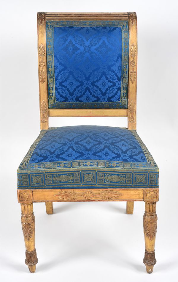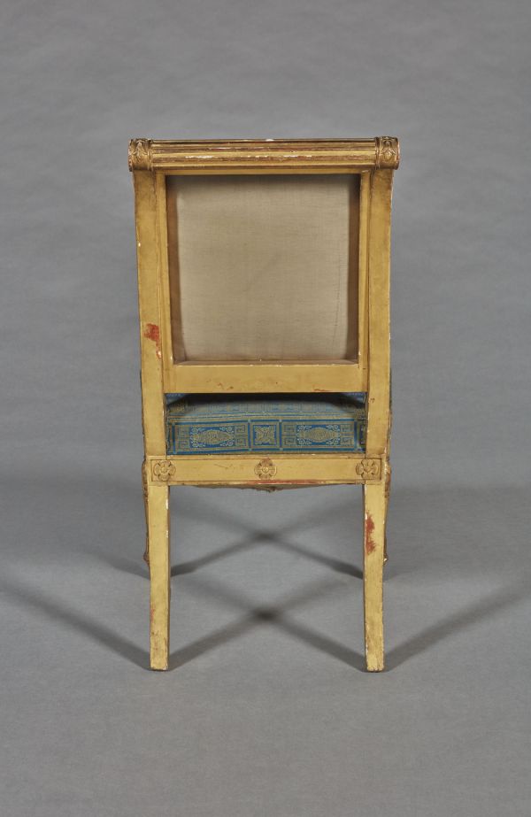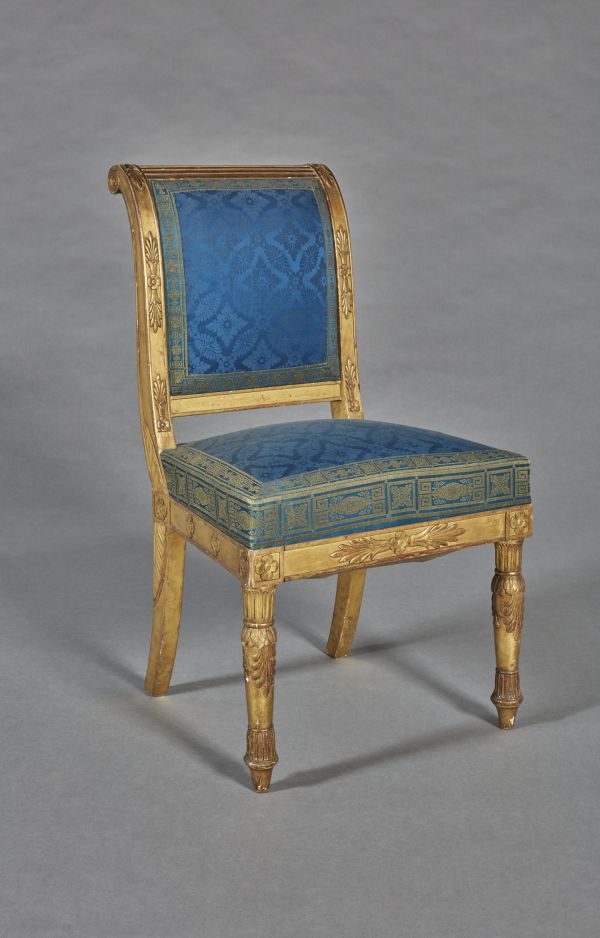 Envoyée en 1839 au palais des Tuileries et placée dans le salon de réception du duc d'Orléans (AN, AJ/19/179, f° 245 v°, n° 17164) - l'ensemble mobilier comprend un canapé (n° 17162), deux fauteuils (n° 17163) et dix-huit chaises (n° 17164).