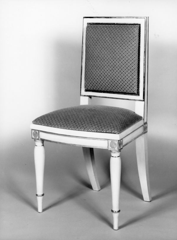 Chaise livrée par Charles Munier (actif de 1828 à 1863), tapissier, fournisseur du mobilier de la Couronne.