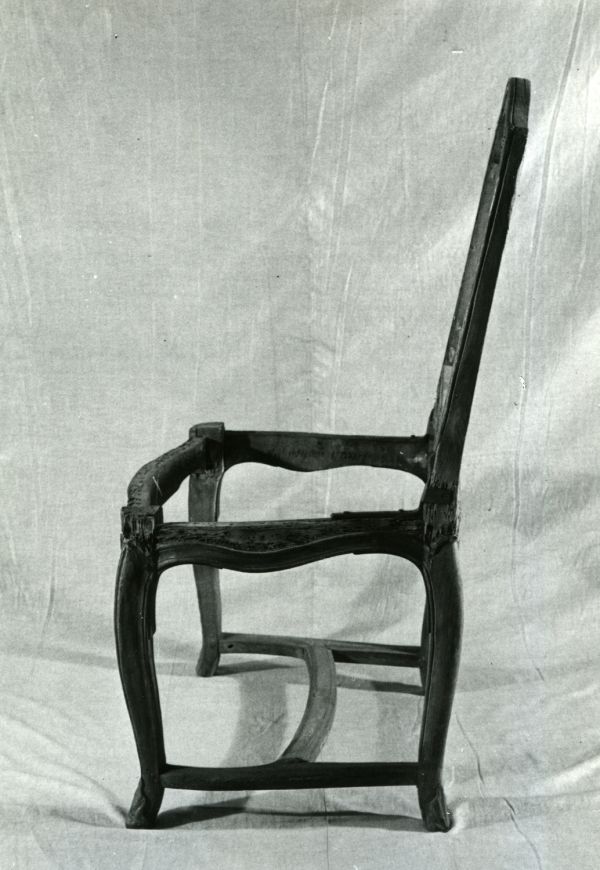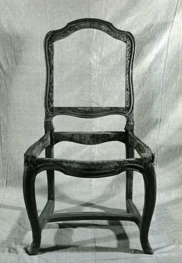 Versée au Mobilier national, le 4 mars 1921, dans une suite hétérogène de vingt-et-une chaises, par le ministère de la Guerre, hôtel de Brienne, 14 rue Saint-Dominique, Paris 7e arr. (Arch. Mob. nat., MM6440, f° 188 v°, n° 8207 ; id., M96, f° 21 v°, n° 8207).