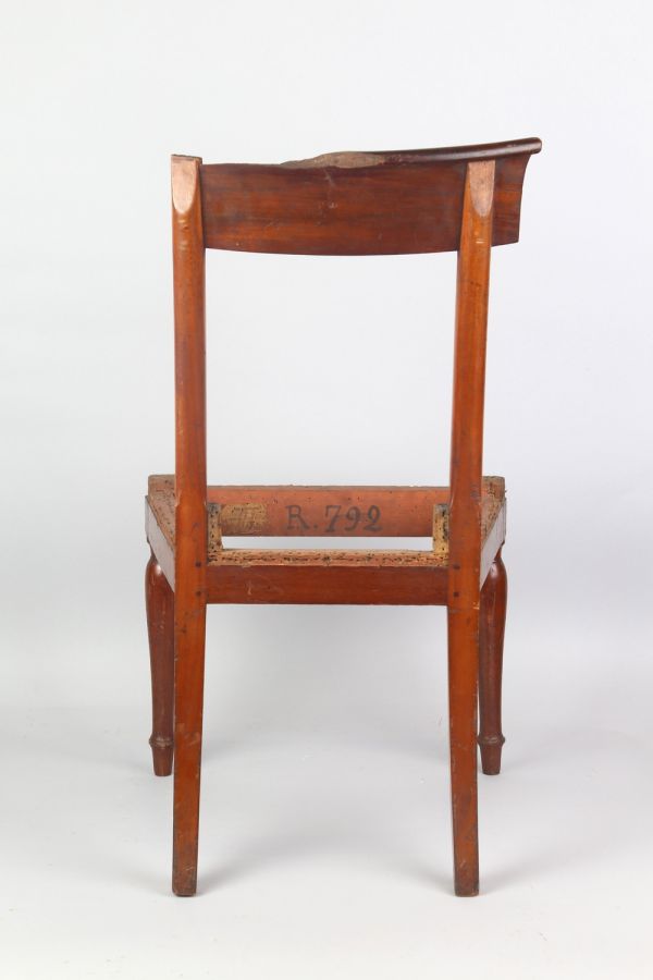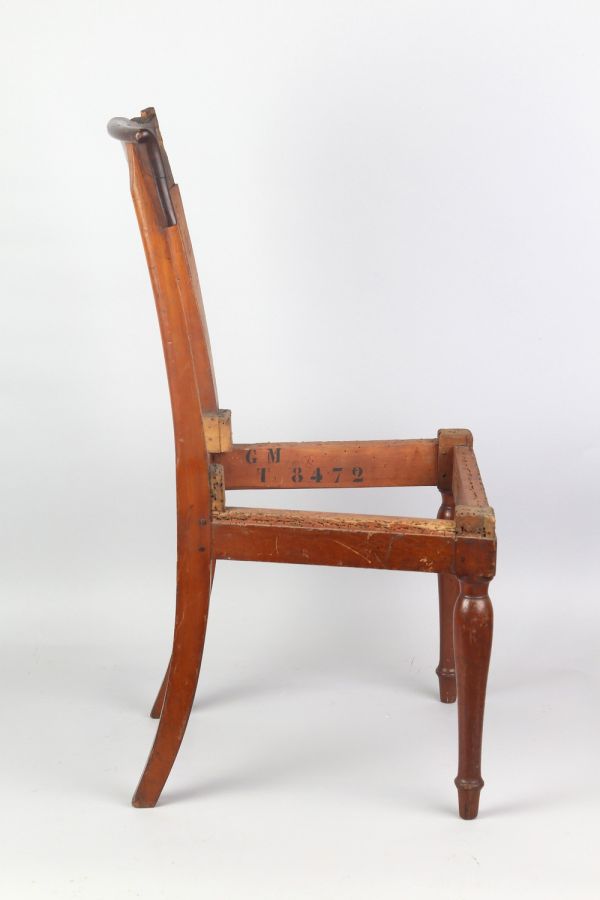 Chaise exécutée par la société « Jacob Frères », association de Georges (II) Jacob (1768-1803) et de son frère, François-Honoré-Georges Jacob (1770-1841), menuisiers-ébénistes, active de 1796 à 1803.