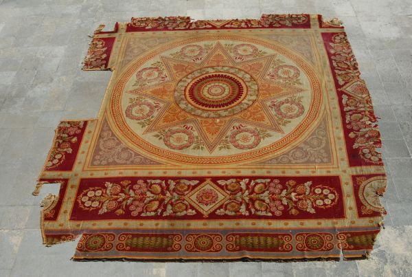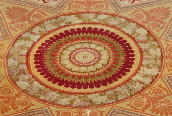 Tapis tissé par la manufacture de Charles Sallandrouze à Aubusson pour le salon jaune de la duchesse d'Angoulême au palais des Tuileries. Ses dimensions d'origine sont de 8,40 m par 7,70 m.