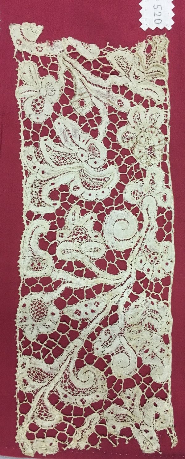 - Numéro donné par l'atelier conservatoire du Puy en Velay : 520 (écrit à l'encre noire sur une étiquette en toile de coton blanc).