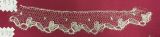 Morceau de volant de dentelle Blonde aux fuseaux à fils continus, milieu ou fin du XVIIIe siècle, fils en soie crème, orné en partie basse d'une frise de motifs végétaux se répétant sur toute la largeur, partie haute semée de petits carrés au point d'esprit, bord inférieur picoté, motifs cernés d'un de soie plus épais, réseau de mailles à fils croisés, monté sur un pongé de soie rose.