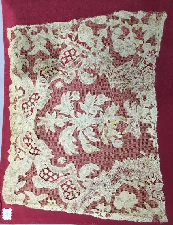 - Numéro donné par l'atelier conservatoire du Puy en Velay : 1043 (écrit à l'encre noire sur une étiquette en toile de coton blanc).