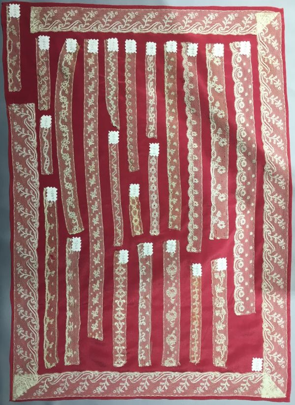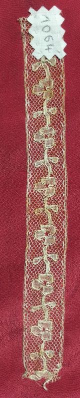 - Numéro donné par l'atelier conservatoire du Puy en Velay : 1064 (écrit à l'encre noire sur une étiquette en toile de coton blanc).