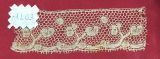 Volant de dentelle de Valenciennes aux fuseaux à fils continus, Nord de la France, deuxième moitié du XVIIIe siècle, bord inférieur orné de doubles tiges terminées par des fleurs stylisées alternant régulièrement avec un pois plein, motifs travaillés en toilé serré et uniforme, réseau de mailles rondes tressées sur tous les cotés, bord inférieur picoté.