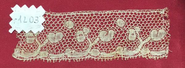 - Numéro donné par l'atelier conservatoire du Puy en Velay : 1203 (écrit à l'encre noire sur une étiquette en toile de coton blanc).