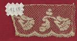 Volant de dentelle de Valenciennes aux fuseaux à fils continus, Nord de la France, deuxième moitié du XVIIIe siècle, décor de fleurs tournées vers la droite, bord inférieur festonné, motifs travaillés en toilé serré et uniforme, réseau de mailles carrées tressées sur tous les cotés, bord inférieur picoté.