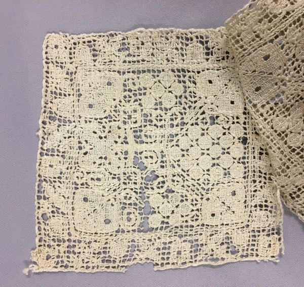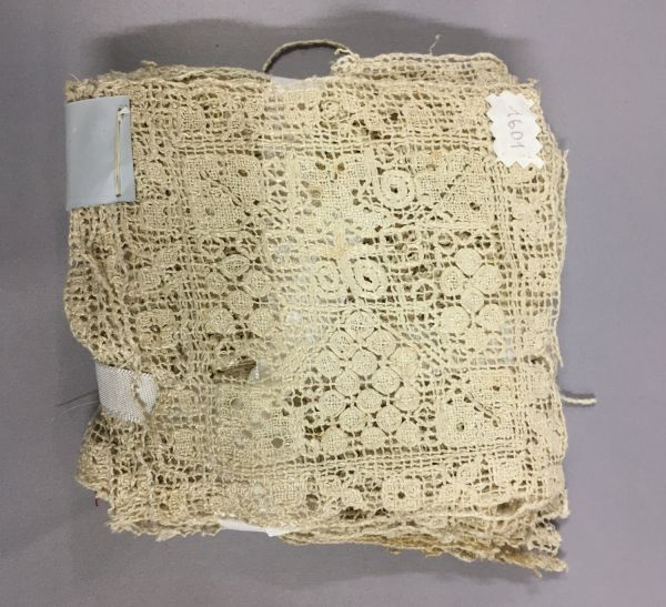 - Numéro donné par l'atelier conservatoire du Puy en Velay : 1601 (écrit à l'encre noire sur une étiquette en toile de coton blanc).