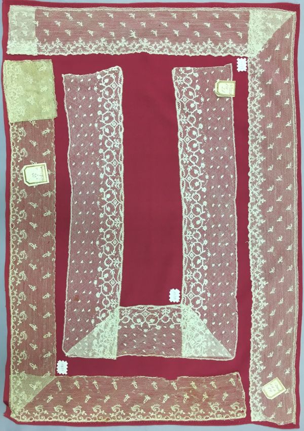 - Numéro donné par l'atelier conservatoire du Puy en Velay : 1637 (écrit à l'encre noire sur une étiquette en toile de coton blanc).