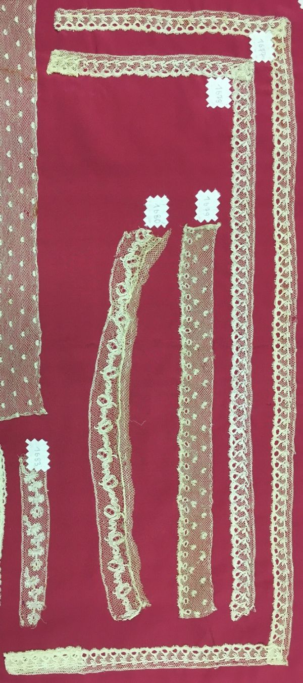 - Numéro donné par l'atelier conservatoire du Puy en Velay : 1677 (écrit à l'encre noire sur une étiquette en toile de coton blanc).