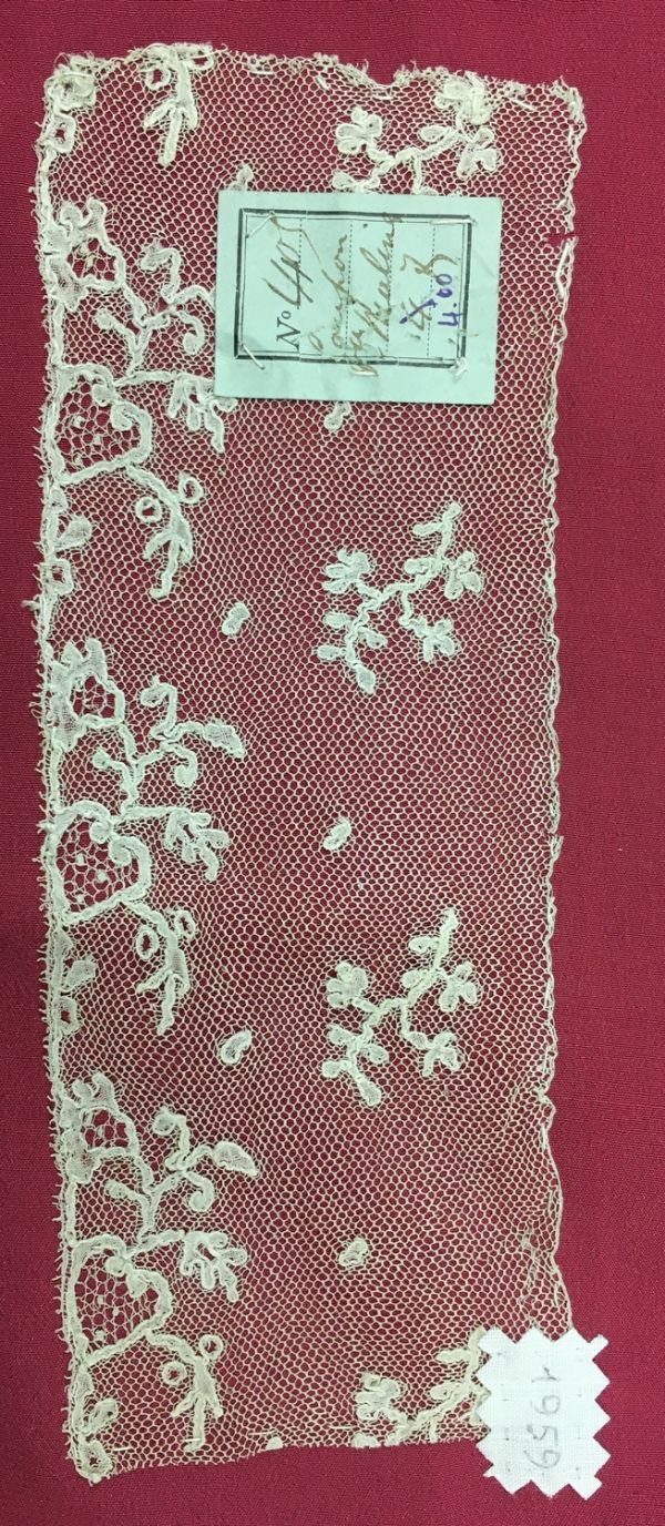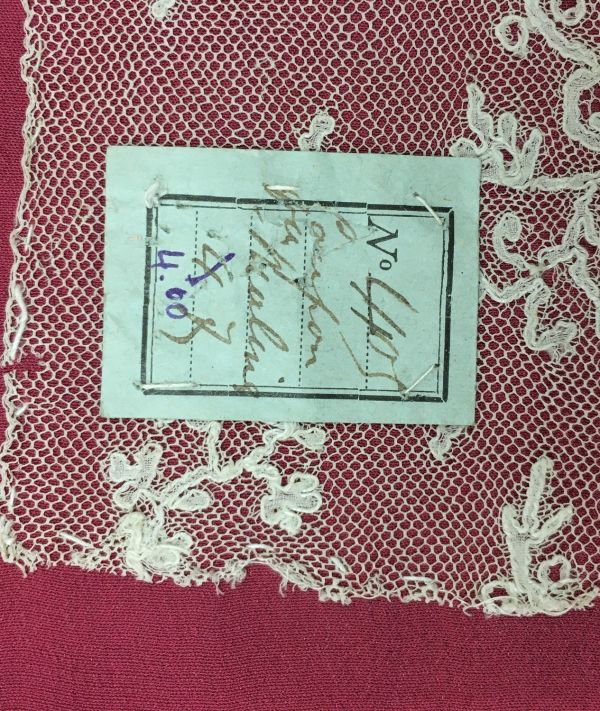 - Numéro donné par l'atelier conservatoire du Puy en Velay : 1959 (écrit à l'encre noire sur une étiquette en toile de coton blanc).