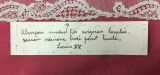- Numéro donné par l'atelier conservatoire du Puy en Velay : 2835 (écrit à l'encre noire sur une étiquette en toile de coton blanc).