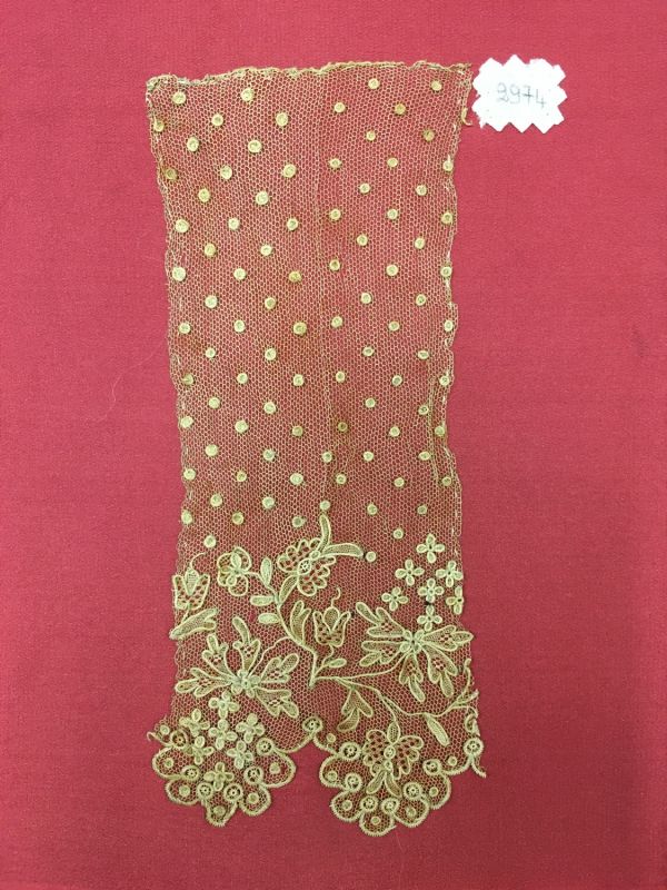 - Numéro donné par l'atelier conservatoire du Puy en Velay : 2973 (écrit à l'encre noire sur une étiquette en toile de coton blanc).