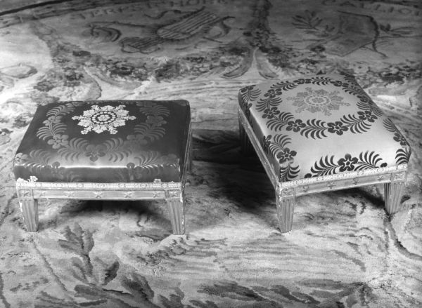 Inscrit à l'inventaire du Mobilier national, le 30 octobre 1909, dans la suite de quatre présente au palais de la Légion d'honneur (Arch. Mob. nat., M99, f° 219 v°, n° 505) - l'inscription comprend deux canapés (n° 502), neuf fauteuils (n° 503), dix-huit chaises (n° 504) et quatre tabourets de pieds (n° 505).