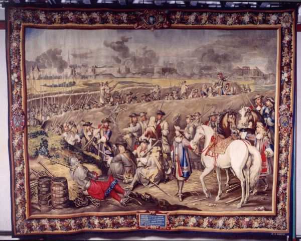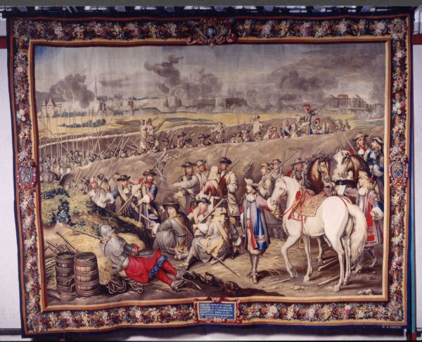 Projet d’inspiration politique, initié par Colbert voire Louis XIV lui-même, la tenture de L’Histoire du roi s’inscrit dans une ancienne tradition monarchique française qui consistait à narrer sous forme de tapisseries ou de fresques les hauts faits des rois. À partir d’un programme conçu par la Petite Académie, Le Brun ébaucha dès 1664, un premier ensemble de sujets allégoriques dans lesquels Louis XIV apparaissait accompagné de divinités olympiennes, qui furent refusées par le roi au profit de scènes situées dans la réalité présente. Sous sa forme définitive, la tenture comprit 14 sujets consacrés aux grands événements civils politiques ou militaires des premières années du règne de Louis XIV, depuis son sacre (7 juin 1654) jusqu’à la prise de Dôle (14 février 1668), quatre scènes relatant plus particulièrement des épisodes de la guerre de Dévolution (1667-1668). Le Brun s’adjoignit pour composer une partie des scènes le peintre paysagiste Adam-Frans van der Meulen, en France depuis 1664. (Vittet-Brejon, 2010, p. 185).