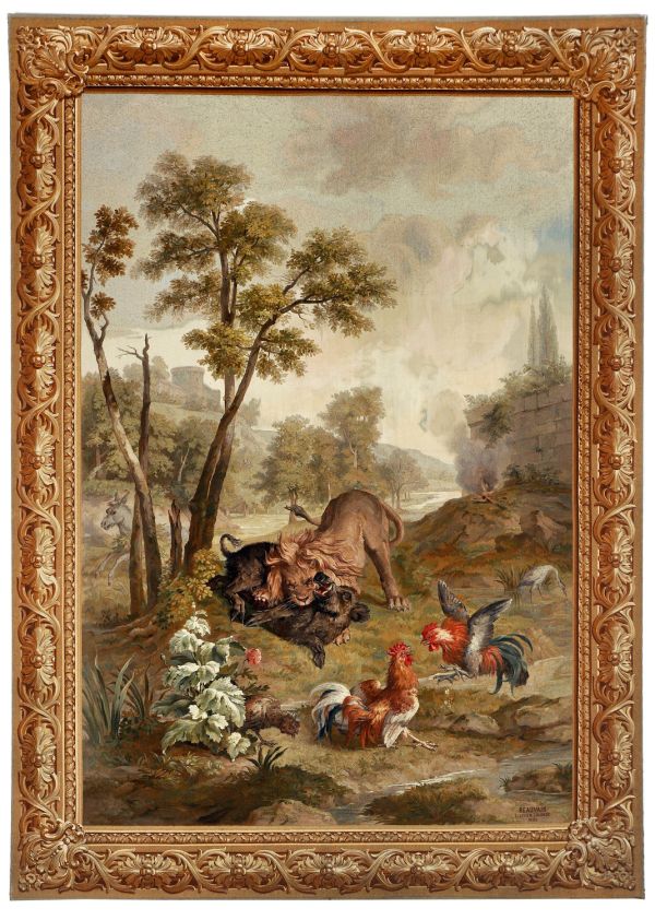 Tapisserie de lice Les Fables de la Fontaine Combat d'animaux