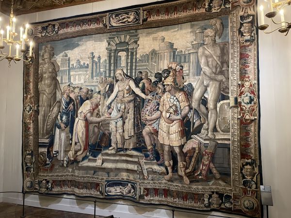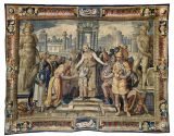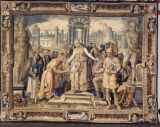 Classée au titre des Monuments historiques le 28 octobre 1905, au sein d'un ensemble de six pièces de la tenture de l'histoire d'Artémise, dite aussi du Couronnement du prince (GMTT 13) (PM75002334). Déposée au Palais Royal, à l'Institut international de coopération intellectuelle, en 1925. Au Mobilier national en 1951.