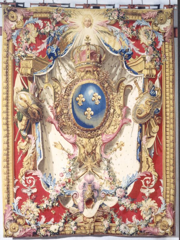 Déposée en 1903 à l'ambassade de France à Londres. Classée au titre des Monuments historiques le 20 janvier 1923, au sein d'un ensemble de onze portières aux Armes de France, d'après Pierre-Josse Perrot (GMTT 134 à 145) (PM75002415). De retour en 2009 au Mobilier national.