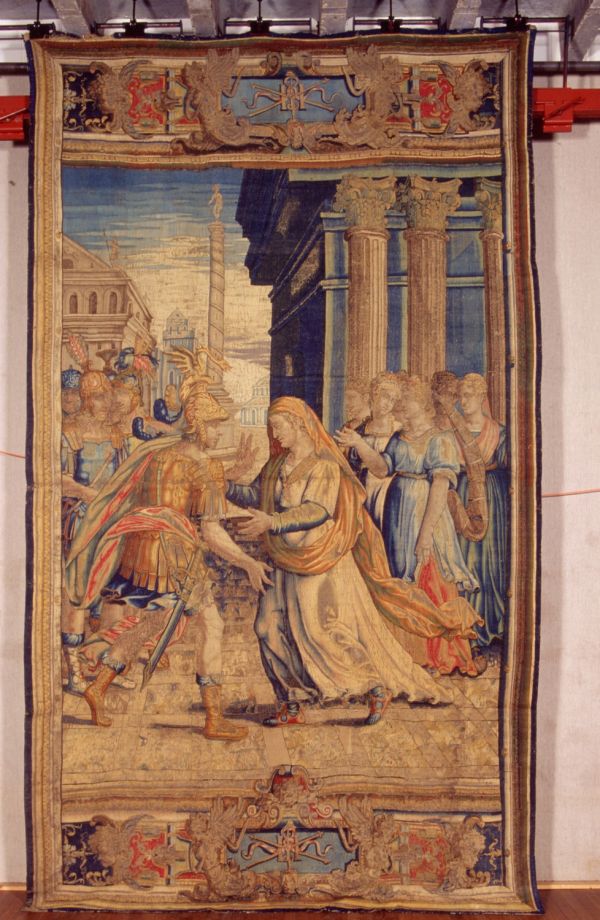 En place en 1905 au Mobilier national. Classée au titre des Monuments historiques le 28 octobre 1905, avec les seize autres pièces de la tenture de l'histoire de Coriolan (GMTT 14) (PM75002339).