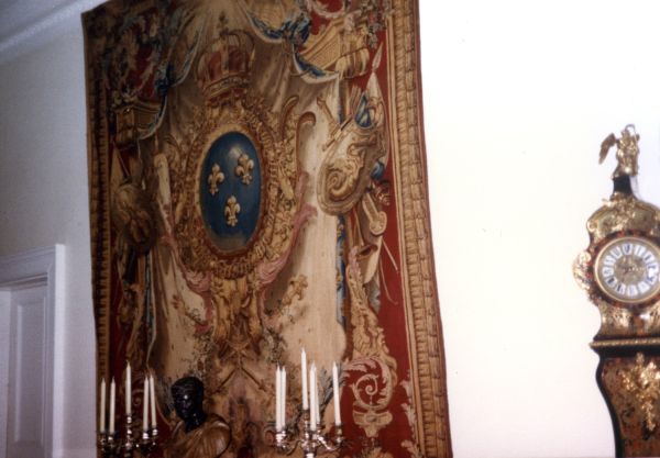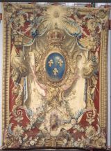 Déposée en 1902 à l'ambassade de France à Londres. Classée au titre des Monuments historiques le 20 janvier 1923, au sein d'un ensemble de onze portières aux Armes de France, d'après Pierre-Josse Perrot (GMTT 134 à 145) (PM75002415). De retour en 2009 au Mobilier national.