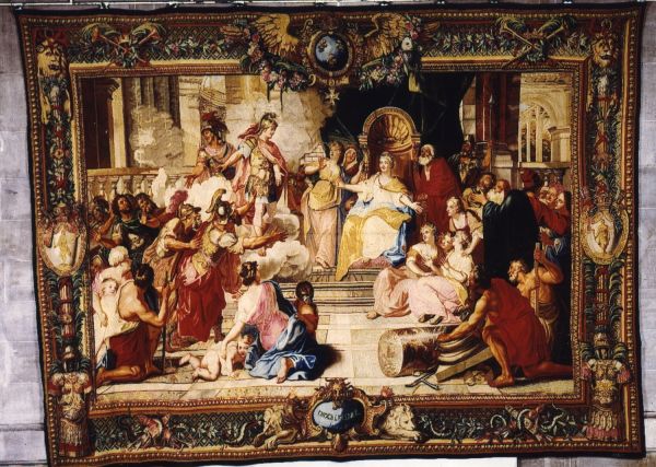 Cette tenture est exécutée d'après un tableau d'Antoire Coypel conservé au musée des beaux-arts d'Arras.