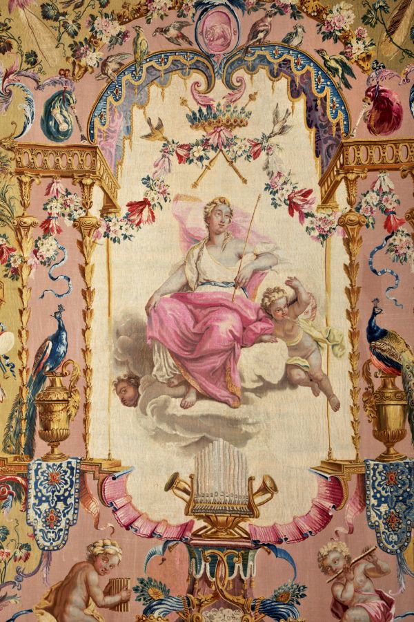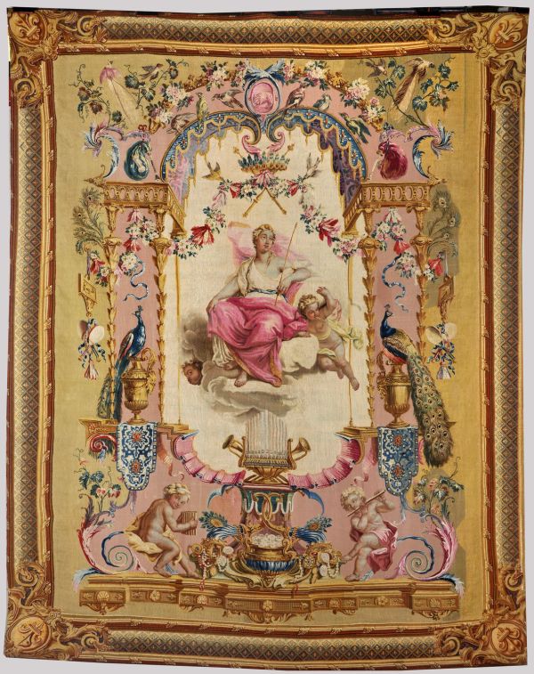 Déposée au palais de l’Élysée en 1901. Classée au titre des Monuments historiques le 20 janvier 1923, au sein d'un ensemble de trente-sept pièces de différents tissages des Portières des dieux, d'après Claude III Audran (PM75002423). En 1951 dans la salle des fêtes de l’Élysée. De retour au Mobilier national en 1995. Déposée au Sénat en 2015.
