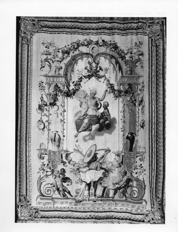 Déposée au palais de l’Élysée en 1901. Classée au titre des Monuments historiques le 20 janvier 1923, au sein d'un ensemble de trente-sept pièces de différents tissages des Portières des dieux, d'après Claude III Audran (PM75002423). En 1951 dans la salle des fêtes de l’Élysée. De retour au Mobilier national en 1995.