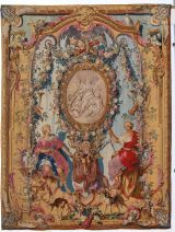 Portière de la manufacture des Gobelins d'après un modèle de Pierre-Josse Perrot, avec des figures de Pierre-Jacques Cazes, des animaux de Desportes, commandé en 1727.