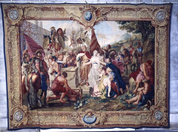 En 1923 au Mobilier national. Classée au titre des Monuments historiques le 20 janvier 1923, au sein d'un ensemble de quinze pièces des tentures de l'Ancien Testament, d'après Coypel (GMTT 24, 30, 31), et de l'Histoire d'Esther, d'après J.-F. de Troy (GMTT 313, 323, 324) (PM75002389).