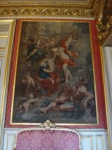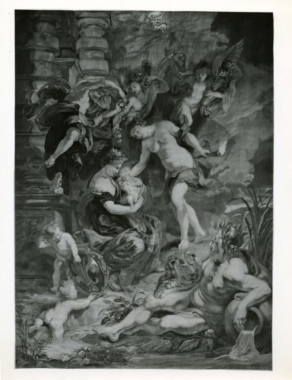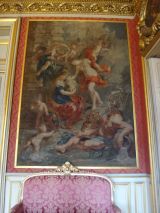 Tenture de l'histoire de Marie de Médicis, tissée entre 1828 et 1838 à la manufacture des Gobelins, d'après les compositions de Peter Paul Rubens (1577-1640) commandées en 1622 par Marie de Médicis, conçues pour orner l'une des deux galeries du palais du Luxembourg et conservées depuis 1816 au musée du Louvre.