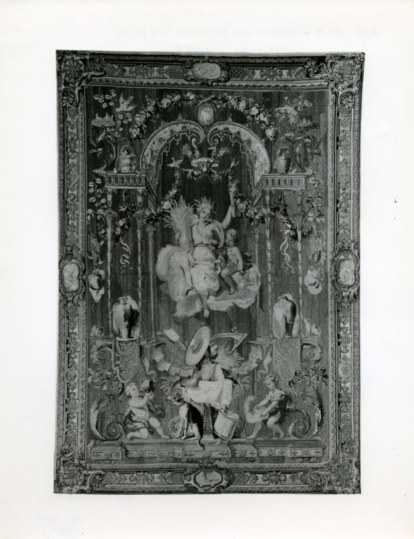 Rentrée au Garde-meuble national le 10 septembre 1921, en provenance du palais de l’Élysée (Arch. Mob. nat., M 102 et 104, inventaire du magasin des tentures en tapisserie).
