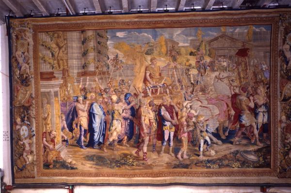En 1905 au Mobilier national. Classée au titre des Monuments historiques le 28 octobre 1905, au sein d'un ensemble de six pièces de la tenture de l'histoire de Constantin (GMTT 44) (PM75002347). Déposée en 1919 au service de l'administration des Territoires rhénans à Coblentz. De retour au Mobilier national. Déposée en 1938 à l'ambassade de France à Ottawa. Restée depuis à Ottawa.
