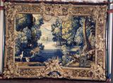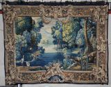 - Paysage au bord de l'eau encadré par une large bordure décorée d'enfants en grisaille.