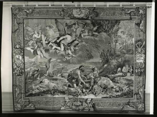 En 1905 au Garde-meubles. Classée au titre des Monuments historiques le 28 octobre 1905, au sein d'un ensemble de six pièces de la tenture de la galerie de Saint-Cloud, d'après Mignard (F 1081, 1082, 1083, GMTT 70, F 1061, GMTT 75) (PM75002356). En 1951 au Mobilier national.