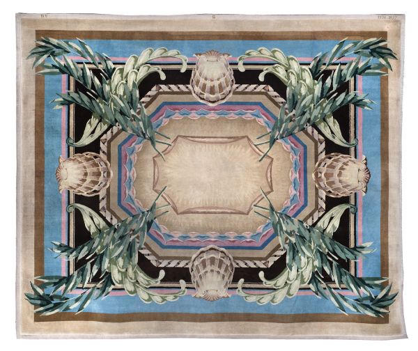 Présenté à l'exposition "Quatre siècles de tapis français, XVIIe-XXe siècles" (Paris, musée des Arts décoratifs, mai-juillet 1949, n° 101). En 1950 à l'hôtel Kinsky, dans le salon d'attente de la direction générale des Arts et lettres (1er étage). De retour au Mobilier national en 1951. Bel exemple de réinterprétation contemporaine de motifs classiques, ce tapis fut présenté dans le cadre de nombreuses expositions (Paris, musée Galliéra, 1957 ; Besançon, musée, 1963 ; Strasbourg, château des Rohan, 1971 ; Paris, Grand Palais-Association française d'action artistique, 1975 ; Aubusson, musée de la tapisserie, 1991 ; Boulogne-Billancourt, Centre culturel, 1991) ; Paris, galerie des Gobelins, "Au fil du siècle", 2018). Déposé en 2021 au ministère de la Culture, rue de Valois (salle à manger du 1er étage).