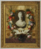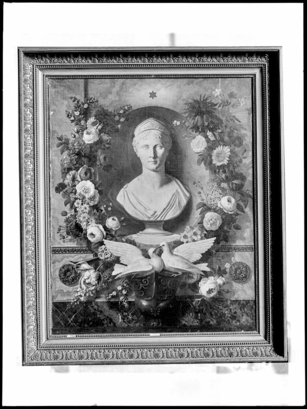 Manufacture nationale des Gobelins / Inventaire Général / N° // Inventaire spécial / N° 172 / Portrait de [Marie-Louise barré] Joséphine / D'après buste de [Bona ] / fleurs par Van Pool / Hr 1m21 // (Inv. 1936 [tampon encre bleue] / [crayon bleu, croix entourée] / Lr 1m02