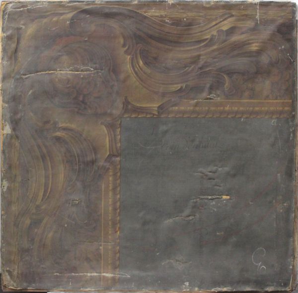 - 3 A I / Coin d'en haut / Commancens a [..] commencer GOB 197/3 GOB / 2 / 197 MANUFACTURE NATIONALE DES GOBELINS / INVENTAIRE GENERAL // INVENTAIRE SPECIAL / N° // N°197 (3.) / Coin de bordure / XVIIIe / Partie gauche- Haut- / Hauteur 1,12 // Largeur 1,12 Inv. 1936 / INV. 1950