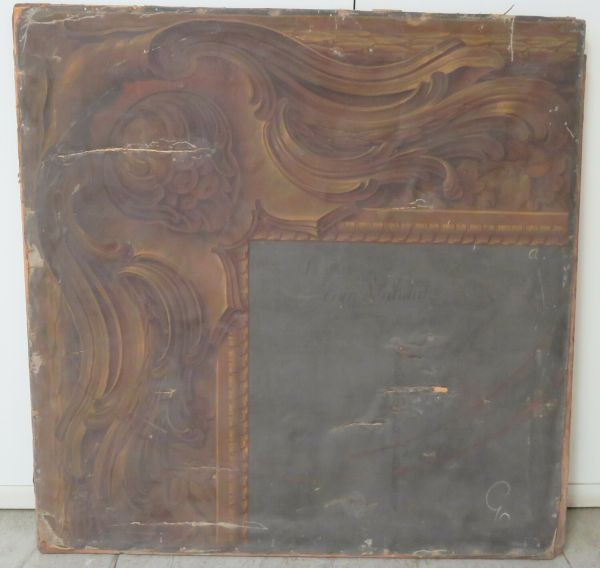 - Ecusson entouré de palmes moulure intérieure de feuilles.