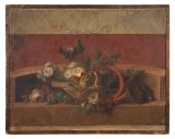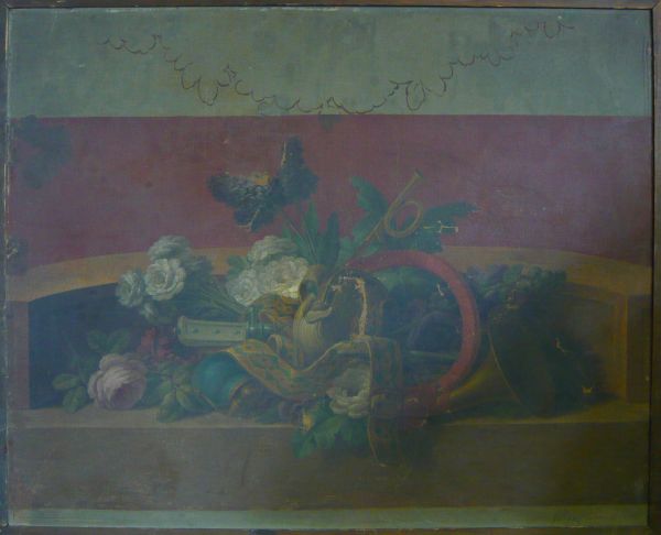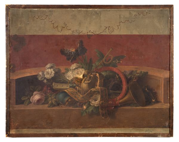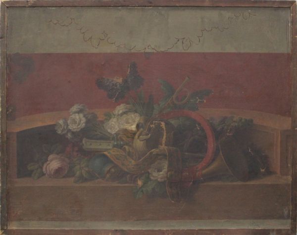 Ce trophée de chasse devait enrichir la bordure créée en 1773 par Maurice Jacques pour le nouveau tissage de la tenture de Boucher, commandé par Robert Child pour sa résidence d’Osterley Park en 1772.