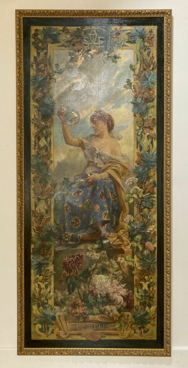 Carton, d'un ensemble de quatre, peints par Albert Maignan pour les panneaux de tapisserie exécutés à la manufacture des Gobelins pour la grande salle de la chambre de commerce de Saint-Étienne.