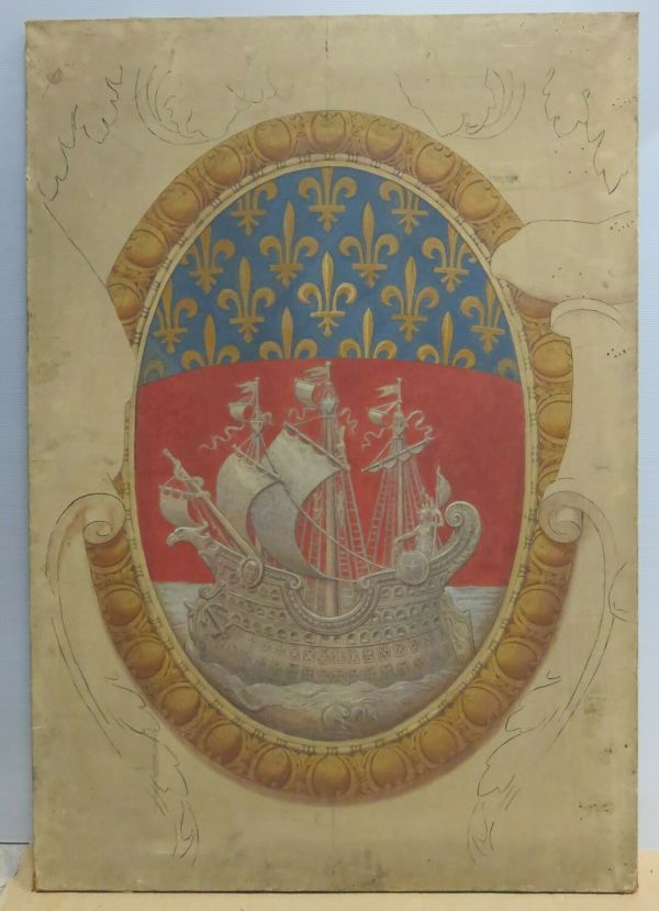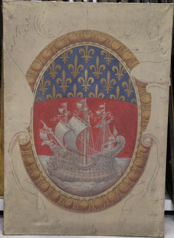 MANUFACTURE NATIONALE DES GOBELINS / INVENTAIRE GENERAL // INVENTAIRE SPECIAL / N° 369. // Pièce de Rechange de la république / Française /Les Armes de la ville de Paris / Hr 1.16 // Lr 0.80