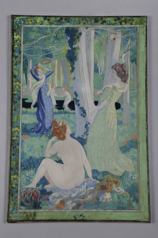 Projet de tapisserie réalisé en 1901, de tonalité générale verte.