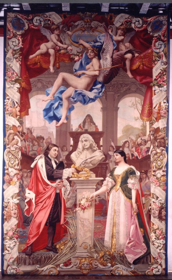 Tapisserie prévue pour le décor du vestibule du théâtre de l'Odéon et finalement attribuée en 1896 au Théâtre-Français.