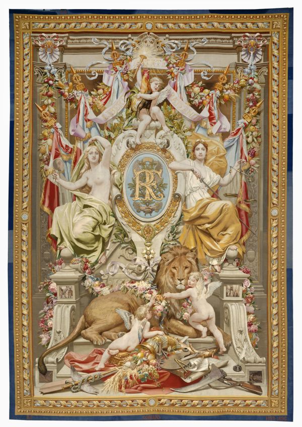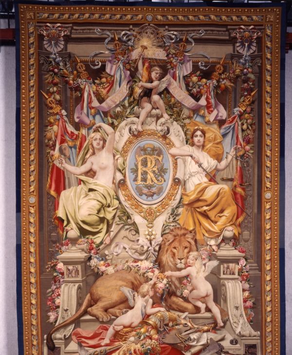 Présentée à l'exposition universelle de 1900 sous le titre "Les armes de la République', cette tapisserie est alors indiqué comme destinée au palais de l’Élysée.
