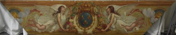 - MANUFACTURE NATIONALE DES GOBELINS / INVENTAIRE DES CARTONS. / N° 444 / Bordure pour La Tapisserie / de Louis XIV de Rigaud / d'après L. Bochard / Hauteur 0,53 / Largeur 2,92 GOB 444/2 INV. 1936 / INV. 1950