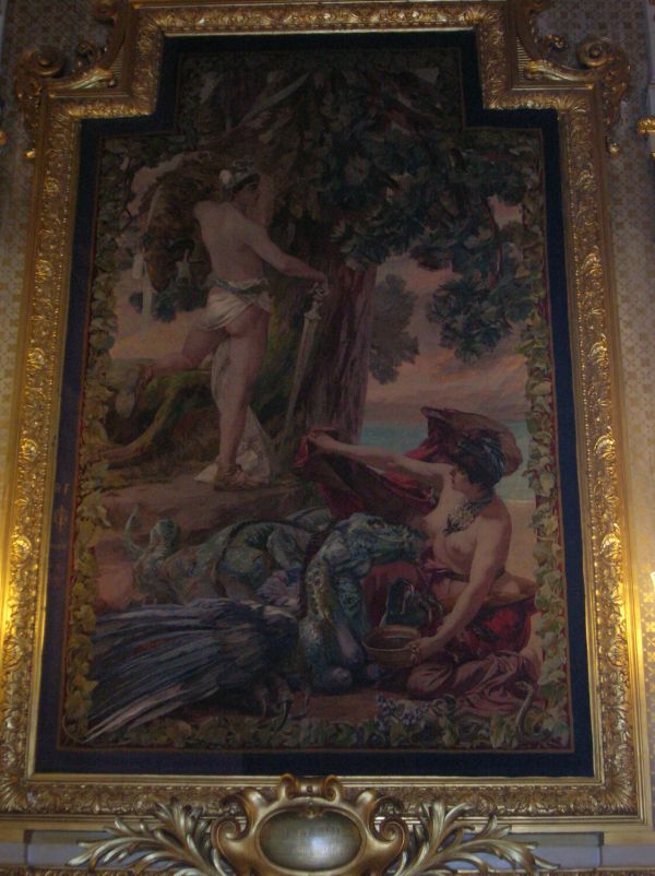 Paul-Amand Challemel-Lacour (1827-1896), président du Sénat, choisit délibérément des sujets qui "n'éveillent aucune susceptibilité politique" : des récits mythologiques inspirés des Métamorphoses d'Ovide.