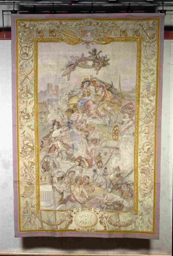 De la série des Provinces et villes de France. Le premier artiste appelé par Geffroy pour cette série fut le dessinateur satirique Adolphe Willette (1857-1926), qui donna un "Salut à Paris" et dont le nom apparaît comme un manifeste de l'entrée de la modernité aux Gobelins.