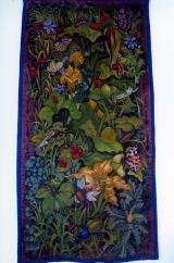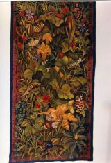 Ensemble de quatre tapisseries sur la faune de différents lieux : potager, marais, tronc d'arbre, mur.