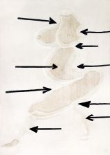 Cette tapisserie est le premier exemplaire tissé entre 1995 et 1997 par la manufacture des Gobelins. Celui-ci fait la part belle aux recherches sur la matière, l’épaisseur des fils et les légers dégradés de beige. Les liciers de Beauvais, pour le second exemplaire (BV 478), ont choisi un traitement plus graphique, avec l’ajout de lignes rouges qui viennent souligner chaque membre de ce corps fragmentaire.